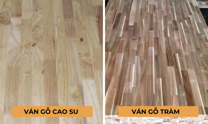 Ván ghép gỗ cao su thanh và gỗ tràm đều là những loại vật liệu